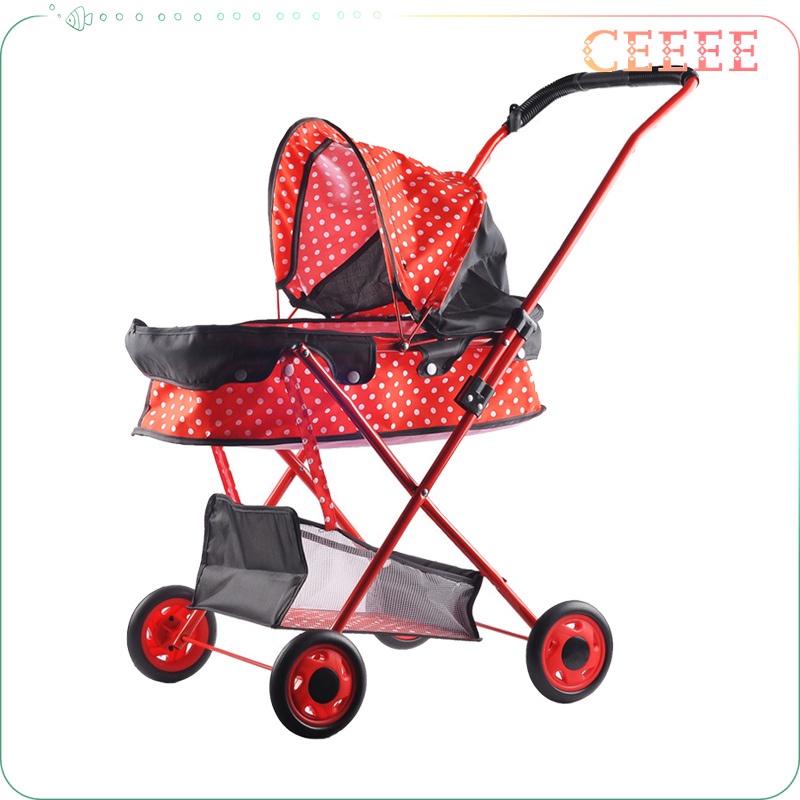 Polka Dots Princess Baby Doll Deluxe Stroller -. Made from sturdy denim material with a pink heart on the back it comes with a denim hood seat belt basket on the bottom and double wheels on all 4 legs. CHICCO JUNIOR ECHO DOLL STROLLER 3 YEARS PRETEND PLAY TOY RED COLOUR.