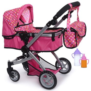 Doll strollers priced between 18 and 30 often come complete with features like storage baskets canopies and swiveling wheels. Baby Doll Stroller Precious Toys Doll Stroller for Toddlers and 2 Year Old Girls and Older Pink White Pokla Dots Foldable with Hood and Basket 45 out of 5 stars 2278 1959 19. CHICCO JUNIOR ECHO DOLL STROLLER 3 YEARS PRETEND PLAY TOY RED COLOUR. Hauck Play N Go Toy Doll Stroller - Easy to Fold For Storage andor Travel Fits dolls up to 21. Lots to Cuddle Baby Doll Rare. Fits Up to 18 Doll Flower Fash N Kolor 3 in 1 Flower Doll Play Set with Kids High Chair Baby Doll Stroller and Pram Toy for Baby Doll Fash N Kolor offers a nursery set for dolls that is quality proof and designed for interactive fun baby stuff. I cant find it on the website but it was in store.