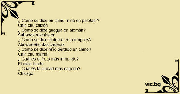 Cómo se dice niño perdido en chino. Chin cham pu Los mejores chistes cortos para niños graciosos y divertidos CHISTES BUENOS. Recordamos que las variantes léxicas corresponden a las distintas formas en las que se puede nombrar o denominar una determinada cosa u objeto. O pelado para decir niño en Colombia que en Argentina es un chico y puede ser un pibe un chavo en México un gurí o botija en Uruguay un mitaí en Paraguay un chamo en Venezuela un patojo en Guatemala y un crío en España. Este sitio web utiliza cookies para que usted tenga la mejor experiencia de usuario. Sin embargo 2 es demasiado cursi para los chinos. En el segmento Cómo se dice en Despierta Orlando seguimos explorando la riqueza de la lengua española y hoy hacemos un recorrido por latinoamérica en cómo se dice niño.
