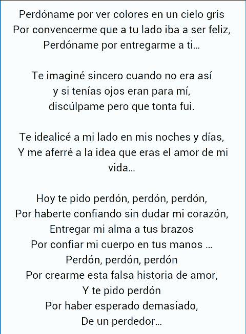Quiero pedirte perdón por ser como soy carta por no ser la persona que soñabas y por no encontrar en mí todo lo que te necesitabas te pido perdón por amarte tanto y cuidarte cada día de mi vida durante todos años que para mí fueron siempre una ilusión de poder conquistar algún día de tu. Perdóname por ser tan tonto sin querer. Fui un ciego al alejarme de tu lado.